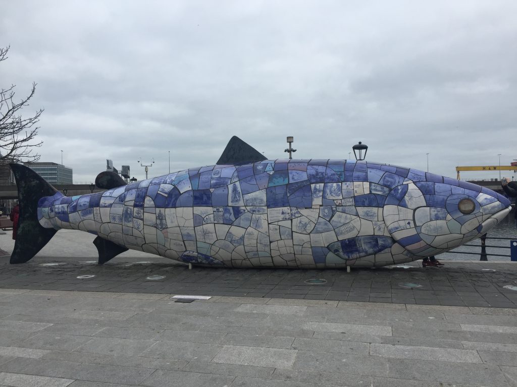 Na de Ramen op een draf over de brug naar de voormalige werf waar onder andere de Titanic van stapel is gelopen. Het is vrijwel de belangrijkste toeristische attractie van Belfast op dit moment.