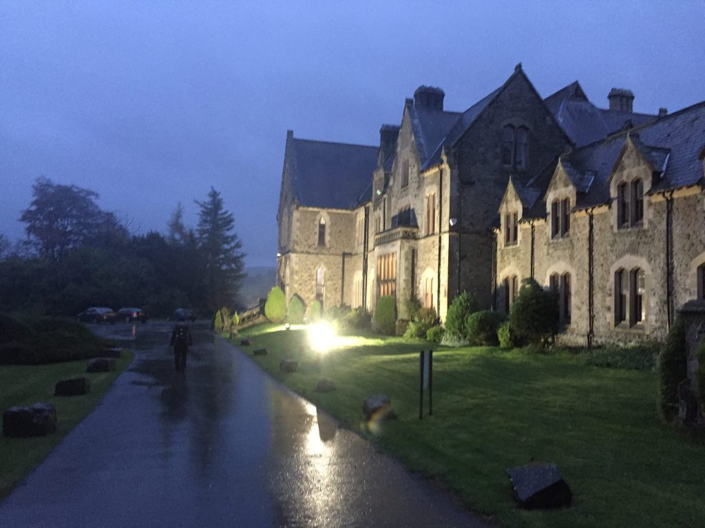 Toen we volledig doorweekt aankwamen bij Mellington Hall schemerde het al. Het haardvuur knapperde in dit kasteel / landhuis dat tegenwoordig voor het grootste deel een upmarket hotel is.